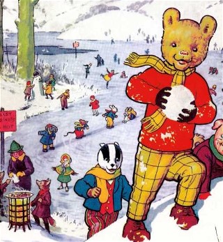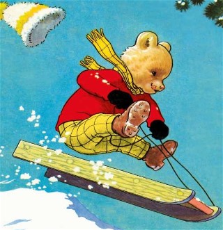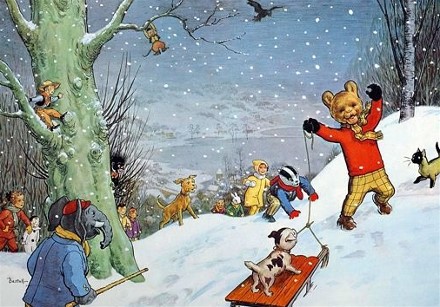 (Hang on a minute - It's Rupert on a sled! Look! Wheee.....)