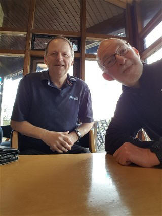 Wayne and I with a nice shiny table at Barton on Sea in April. |